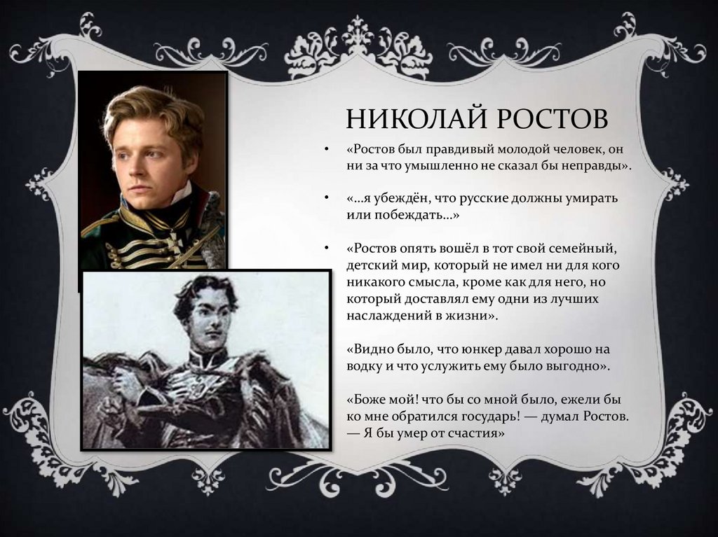 НИКОЛАЙ РОСТОВ«Ростов был правдивый молодой человек, он
