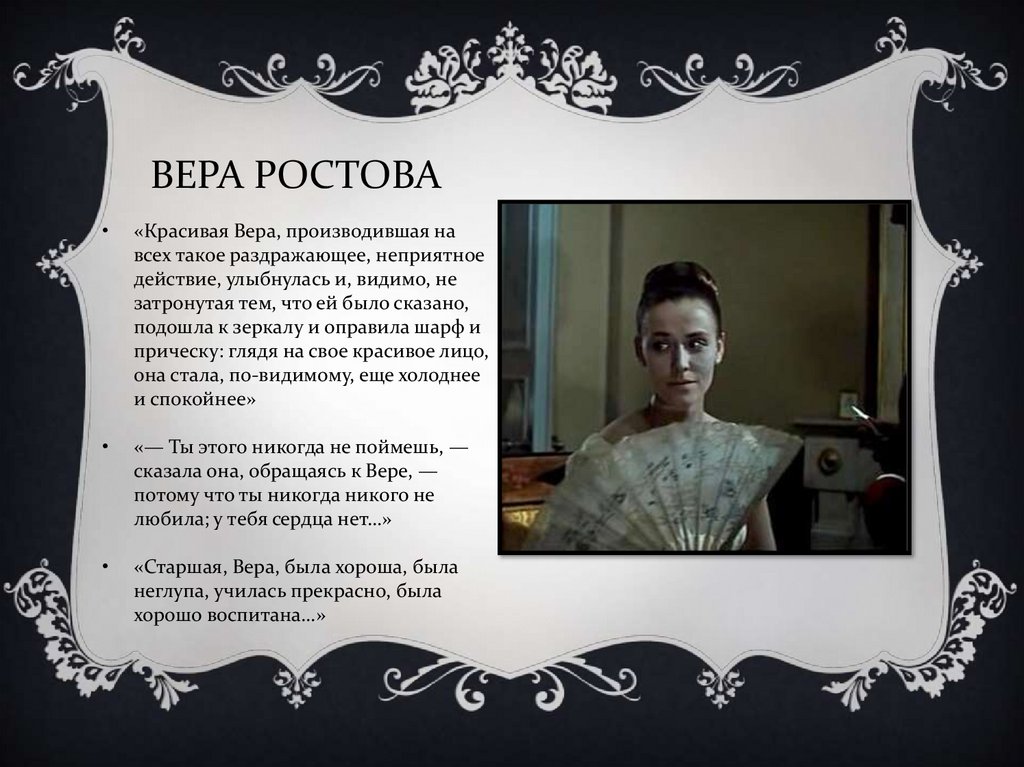 ВЕРА РОСТОВА«Красивая Вера, производившая на