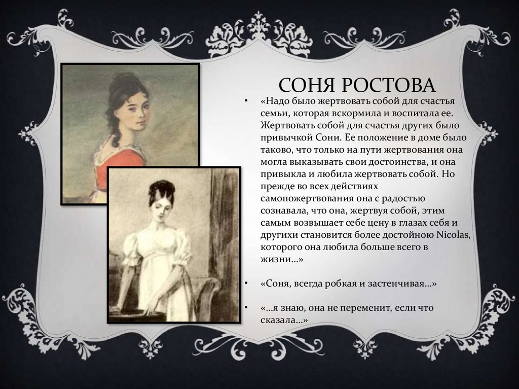 СОНЯ РОСТОВА«Надо было жертвовать собой для счастья