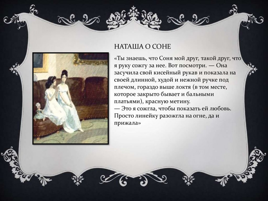 НАТАША О СОНЕ«Ты знаешь, что Соня мой друг, такой друг, что