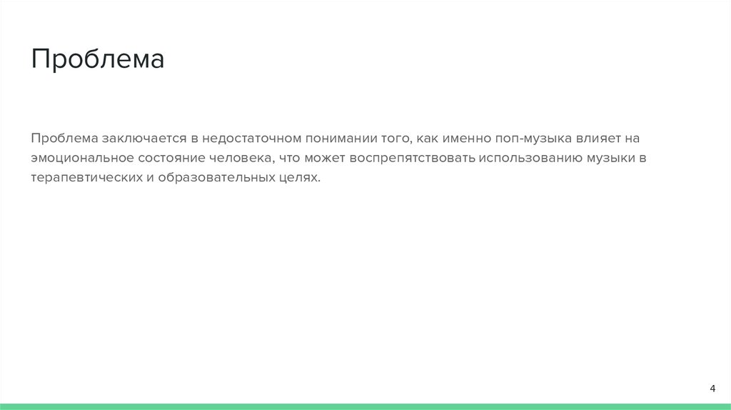 ПроблемаПроблема заключается в недостаточном понимании того, как именно поп-музыка влияет на