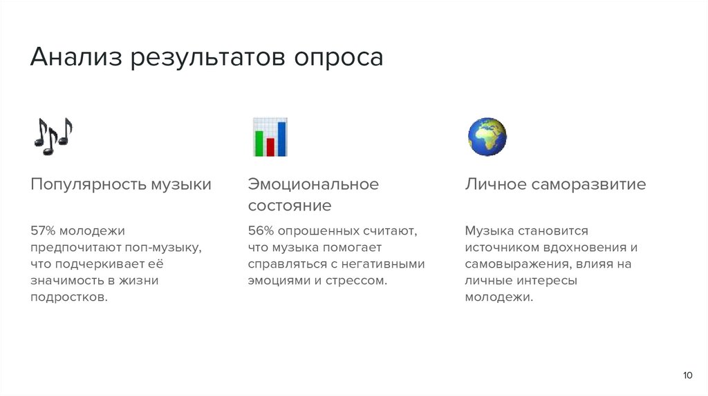 ЗаключениеСовременная поп-музыка оказывает значительное влияние на эмоциональное состояние человека,
