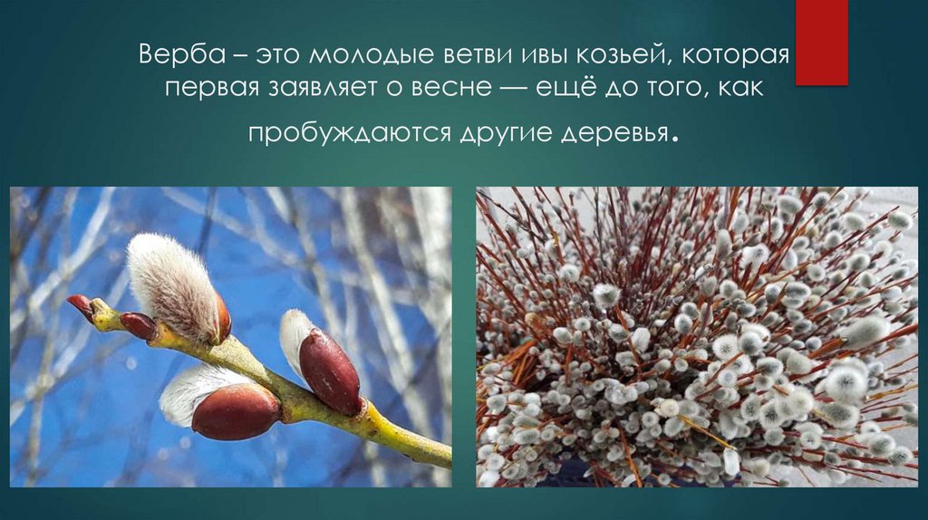 3. Верба – это молодые ветви ивы козьей, которая первая заявляет о весне — ещё до того, как пробуждаются другие деревья.
