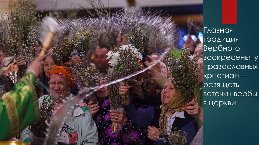 5. Главная традиция Вербного воскресенья у православных христиан — освящать веточки вербы в церкви.