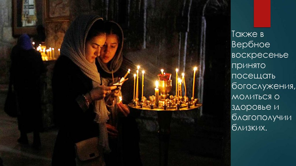 6. Также в Вербное воскресенье принято посещать богослужения, молиться о здоровье и благополучии близких.