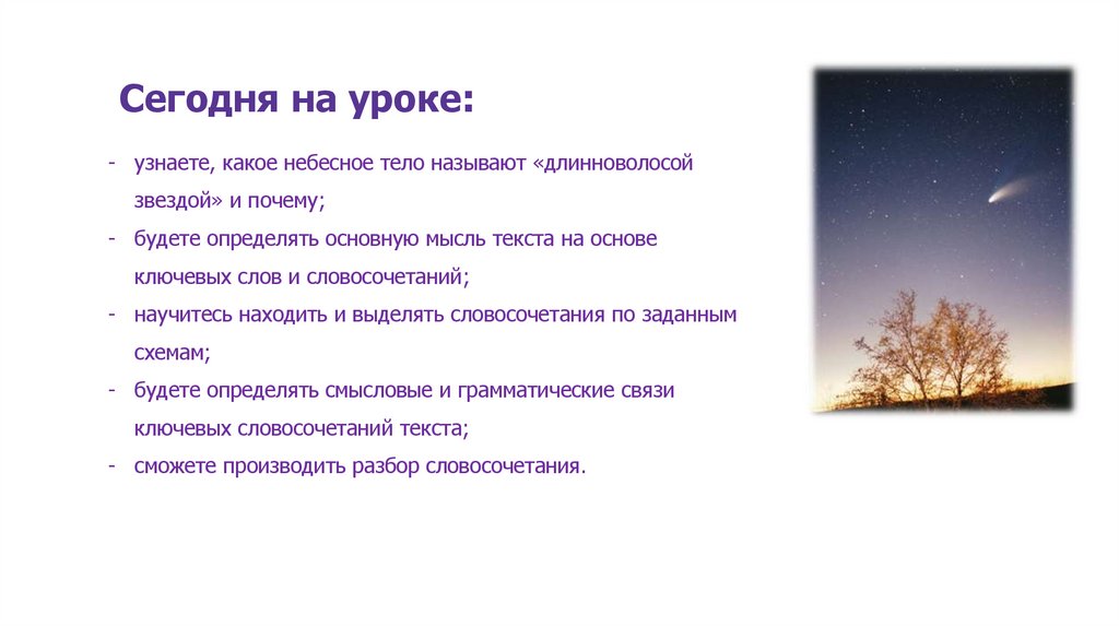 Сегодня на уроке:- узнаете, какое небесное тело называют «длинноволосой