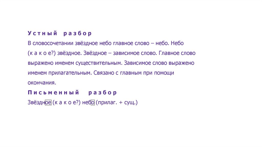 Звёздное (к а к о е?) небо (прилаг. + сущ.)