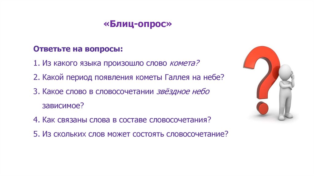 5. Из скольких слов может состоять словосочетание? – Из двух и
