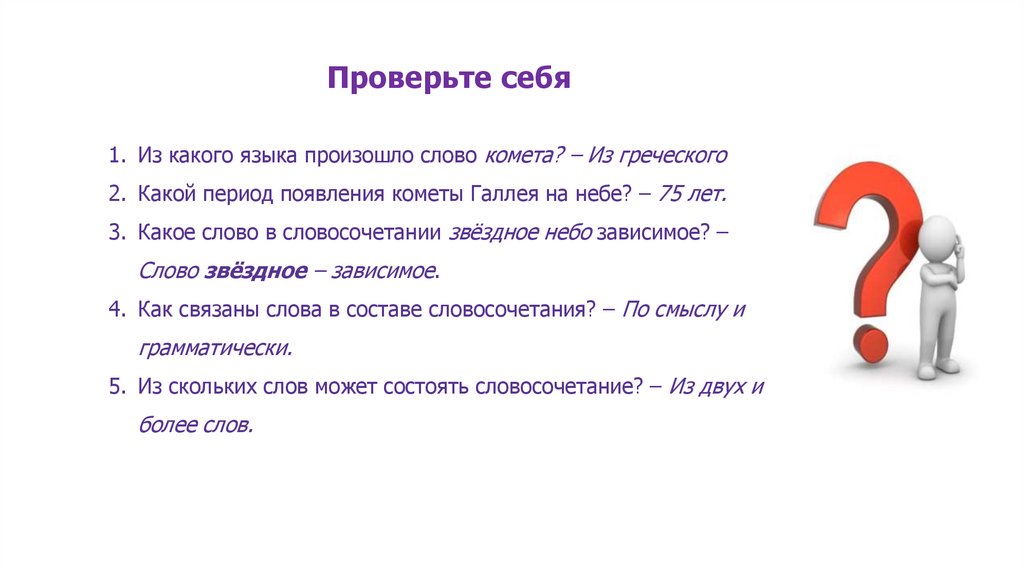 Проверьте себя1. Из какого языка произошло слово комета? – Из греческого