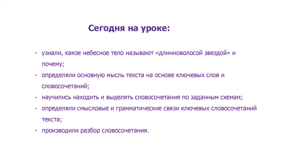 Сегодня на уроке:- узнали, какое небесное тело называют «длинноволосой звездой» и