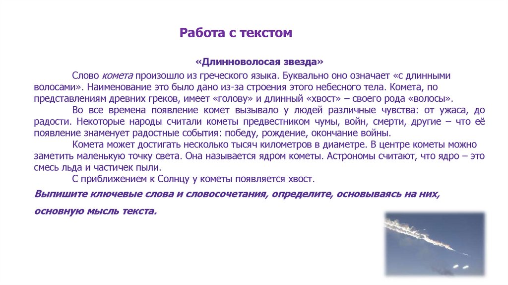 из примеров вы узнали из темы урока: комета – длинноволосая звезда.