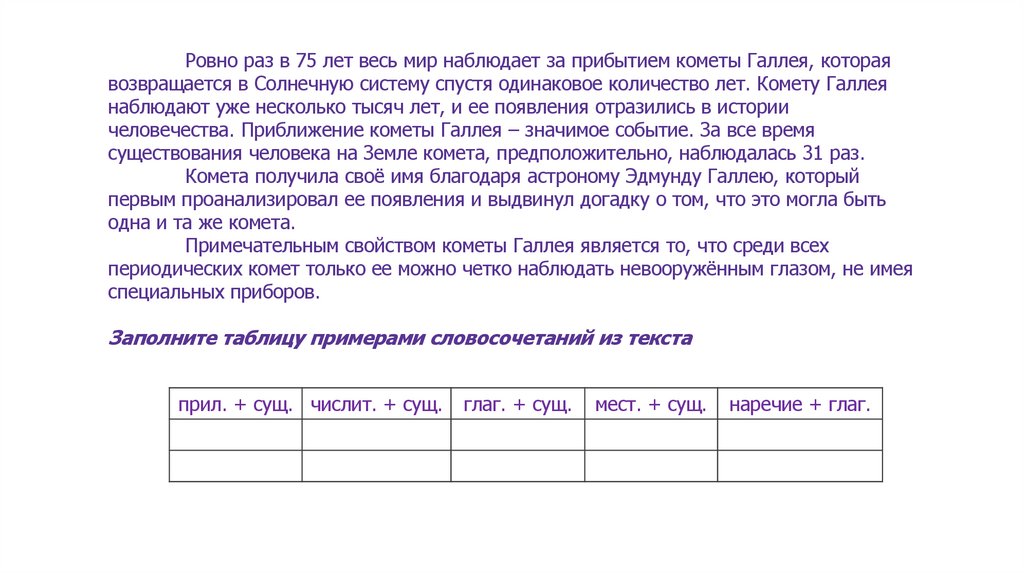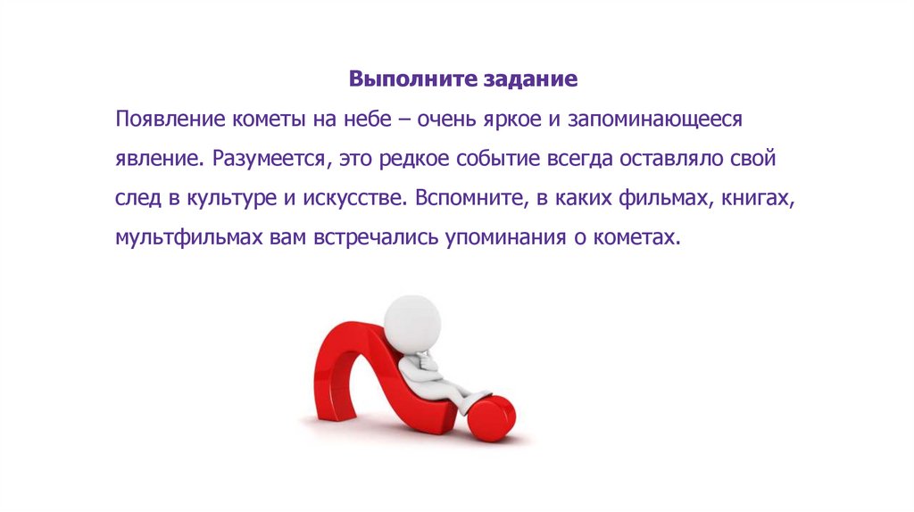 Выполните заданиеПоявление кометы на небе – очень яркое и запоминающееся