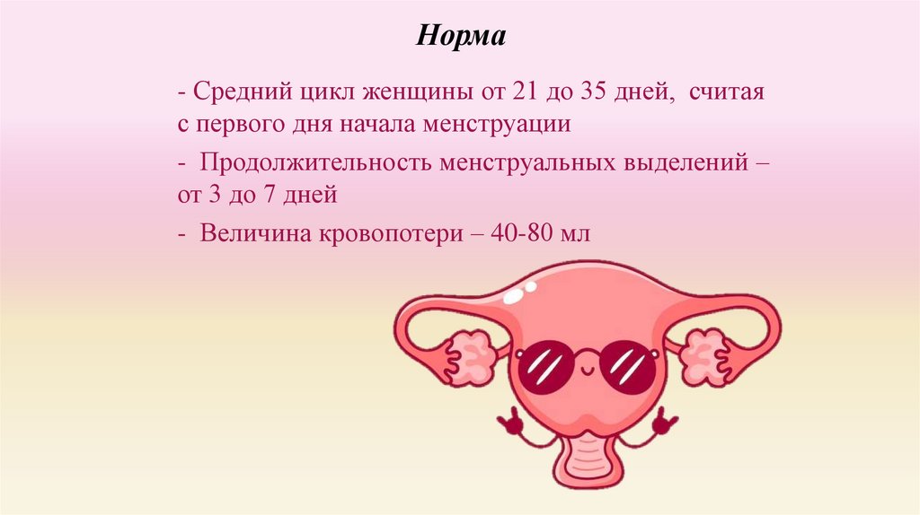 Норма- Средний цикл женщины от 21 до 35 дней, считая
