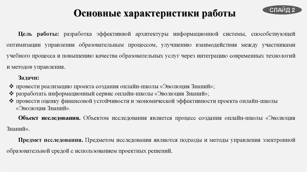 Объект исследования. Объектом исследования является процесс создания онлайн-школы «Эволюция