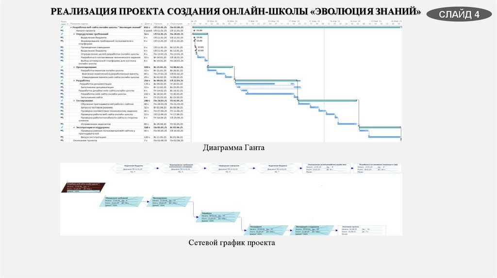РЕАЛИЗАЦИЯ ПРОЕКТА СОЗДАНИЯ ОНЛАЙН-ШКОЛЫ «ЭВОЛЮЦИЯ ЗНАНИЙ»Диаграмма Ганта