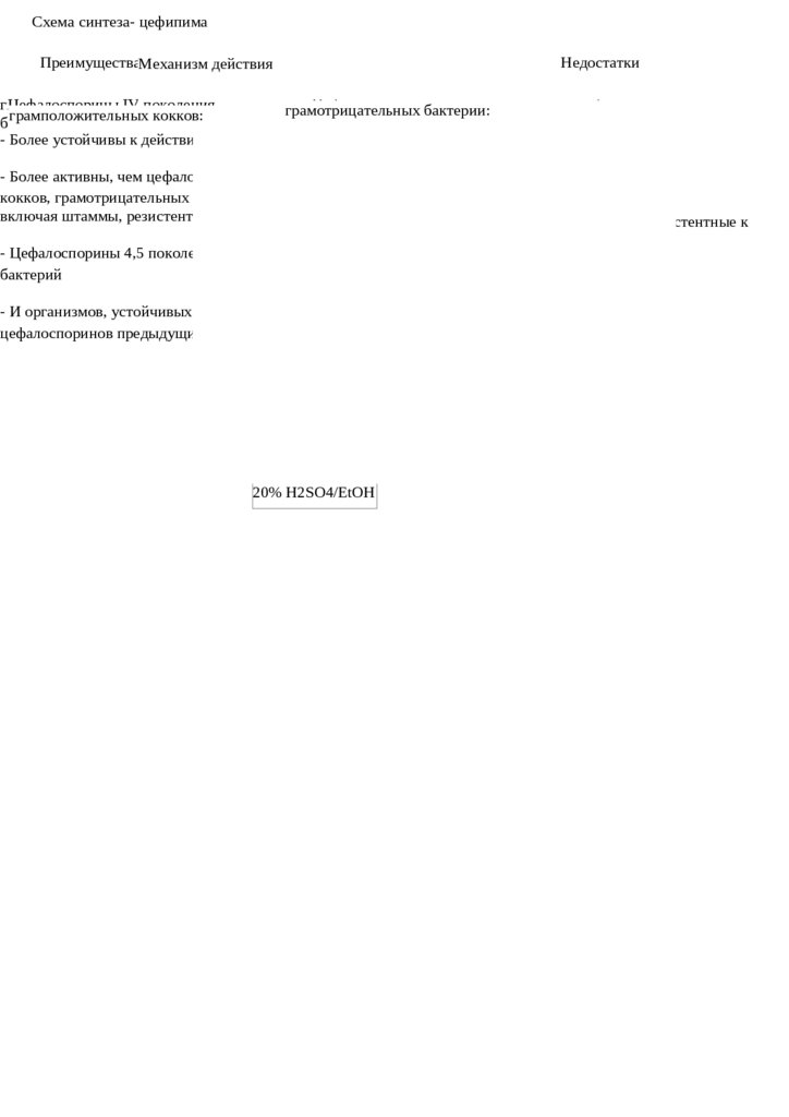 Схема синтеза- цефипимаПреимуществаМеханизм действия