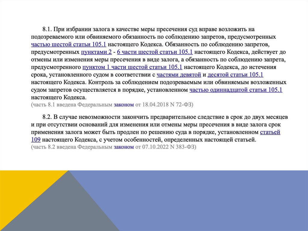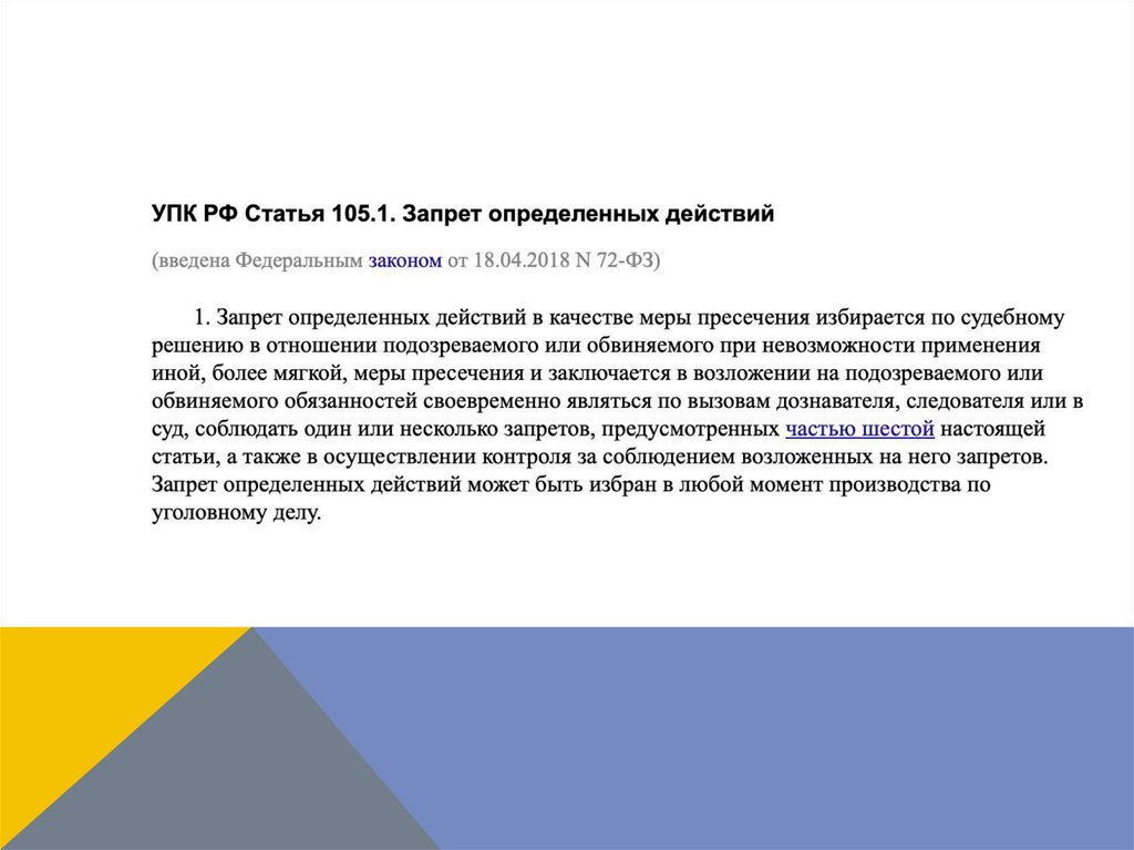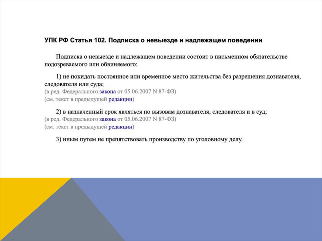 СОДЕРЖАНИЕ ЛЕКЦИИ130. Домашний арест, залог, запрет определенных действий, подписка о невыезде как меры