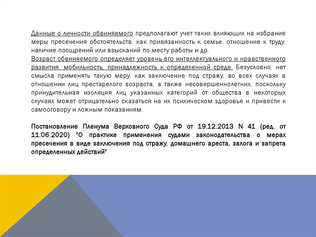послеродовое состояние обвиняемой). Выбор меры пресечения может зависеть и