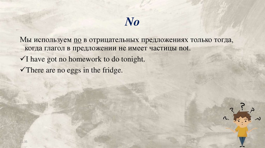 Мы используем no в отрицательных предложениях только тогда,когда глагол в предложении не имеет частицы not.