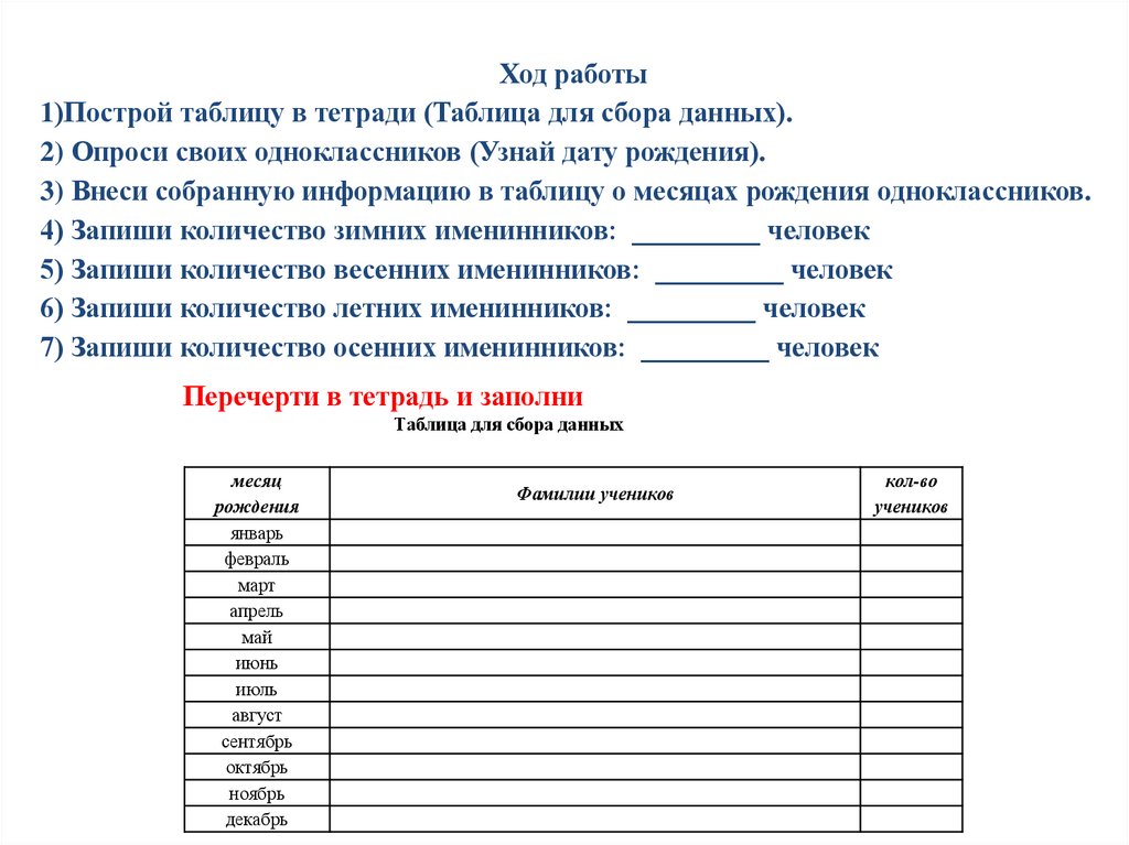3) Внеси собранную информацию в таблицу о месяцах рождения одноклассников.