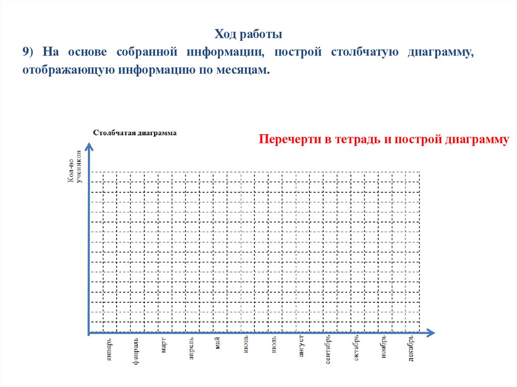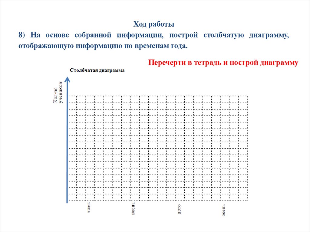 Ход работы8) На основе собранной информации, построй столбчатую диаграмму,