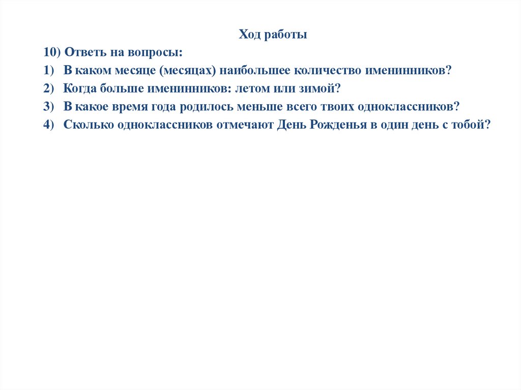 4) Сколько одноклассников отмечают День Рожденья в один день с тобой?