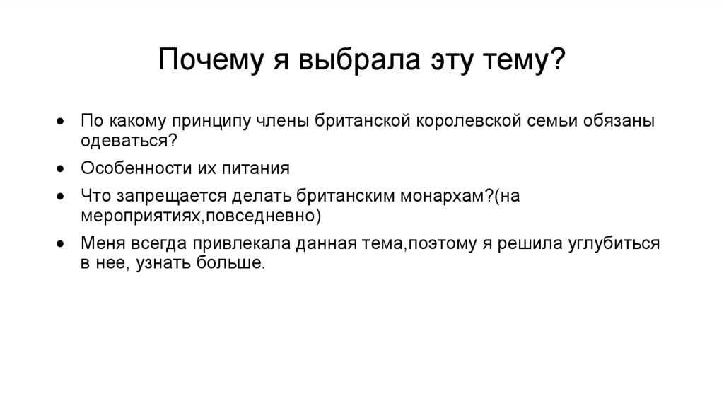 Почему я выбрала эту тему?По какому принципу члены британской королевской семьи обязаны