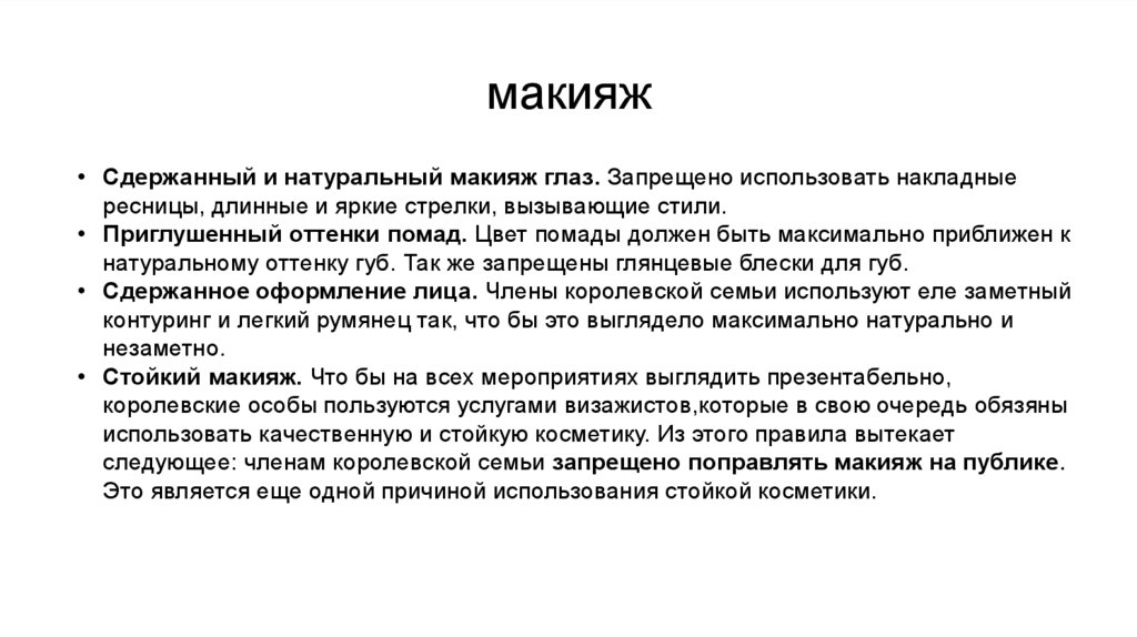 • Сдержанное оформление лица. Члены королевской семьи используют еле заметный