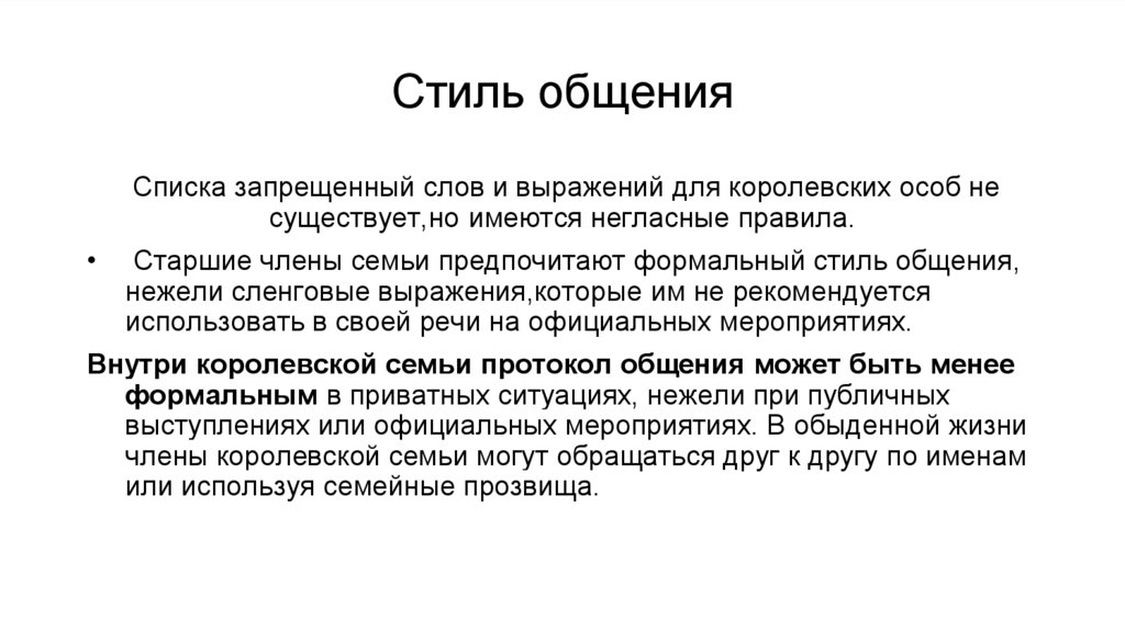 Стиль общенияСписка запрещенный слов и выражений для королевских особ не