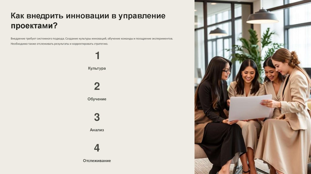 Внедрение требует системного подхода. Создание культуры инноваций, обучение команды и поощрение экспериментов.