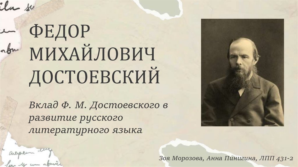 1. ФЕДОР МИХАЙЛОВИЧ ДОСТОЕВСКИЙ Вклад Ф. М. Достоевского в развитие русского литературного языка