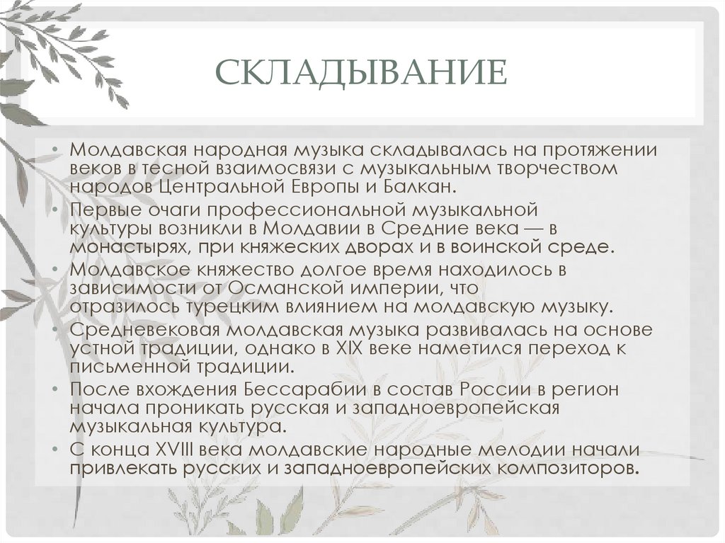 СКЛАДЫВАНИЕ• Молдавская народная музыка складывалась на протяжении