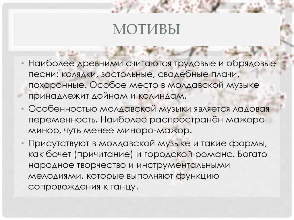 МОТИВЫ• Наиболее древними считаются трудовые и обрядовые