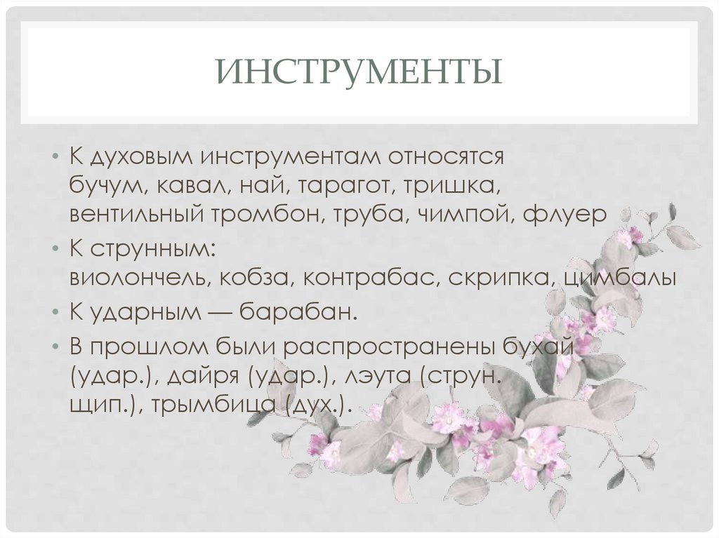 ИНСТРУМЕНТЫ• К духовым инструментам относятся