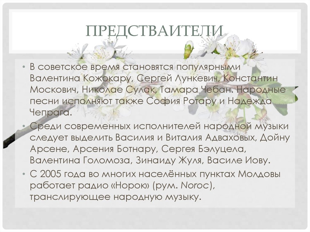 ПРЕДСТВАИТЕЛИ• В советское время становятся популярными