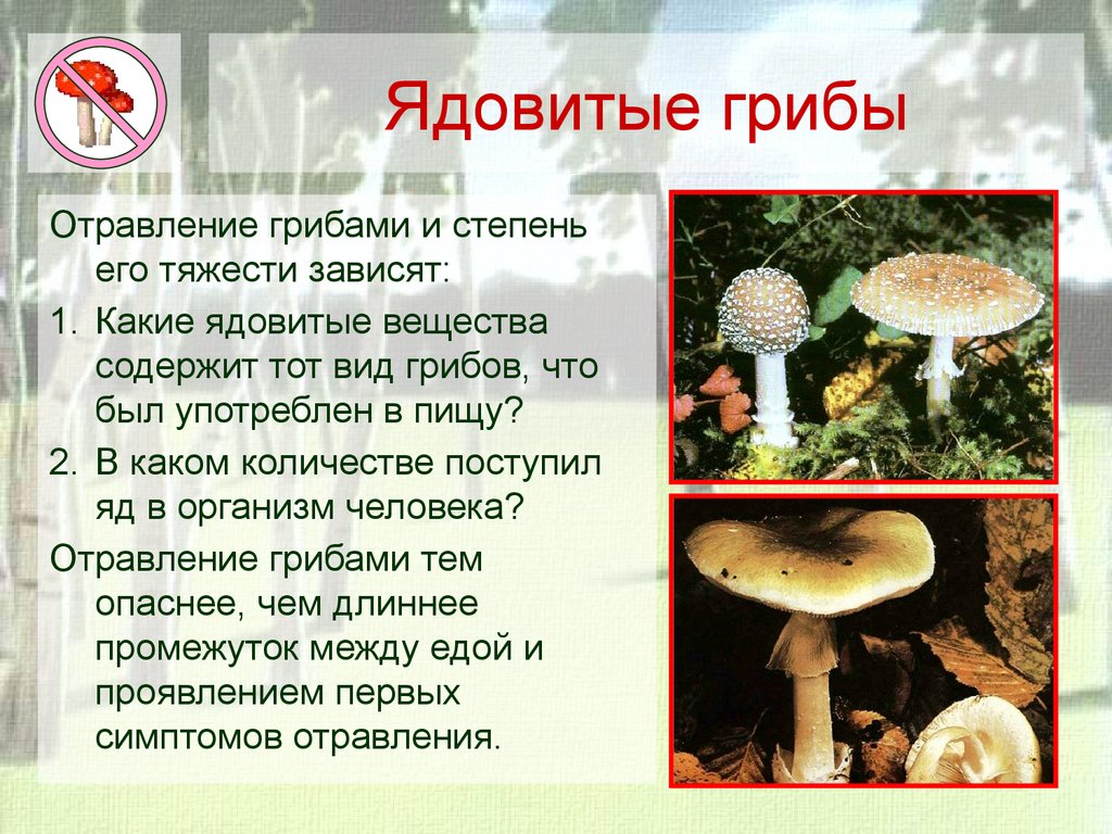 Ядовитые грибыОтравление грибами и степень