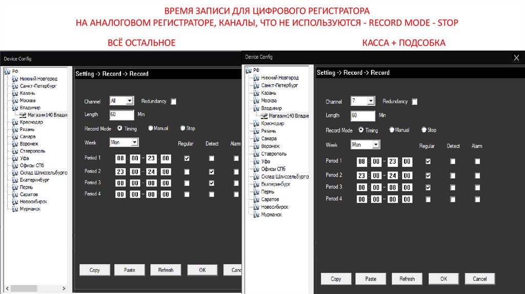 ВРЕМЯ ЗАПИСИ ДЛЯ ЦИФРОВОГО РЕГИСТРАТОРАНА АНАЛОГОВОМ РЕГИСТРАТОРЕ, КАНАЛЫ, ЧТО НЕ ИСПОЛЬЗУЮТСЯ - RECORD MODE - STOP