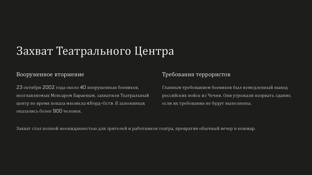 истории России. Этот теракт, произошедший в октябре 2002 года, унес