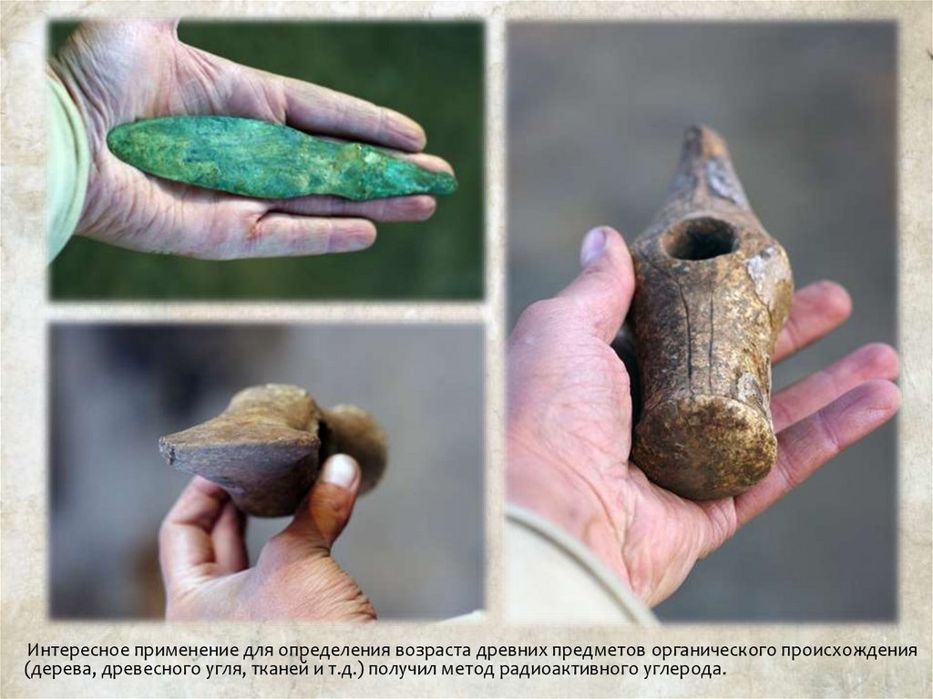 Интересное применение для определения возраста древних предметов органического происхождения(дерева, древесного угля, тканей и т.д.) получил метод радиоактивного углерода.