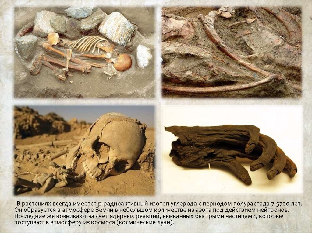 В растениях всегда имеется р-радиоактивный изотоп углерода с периодом полураспада 7-5700 лет.Он образуется в атмосфере Земли в небольшом количестве из азота под действием нейтронов.