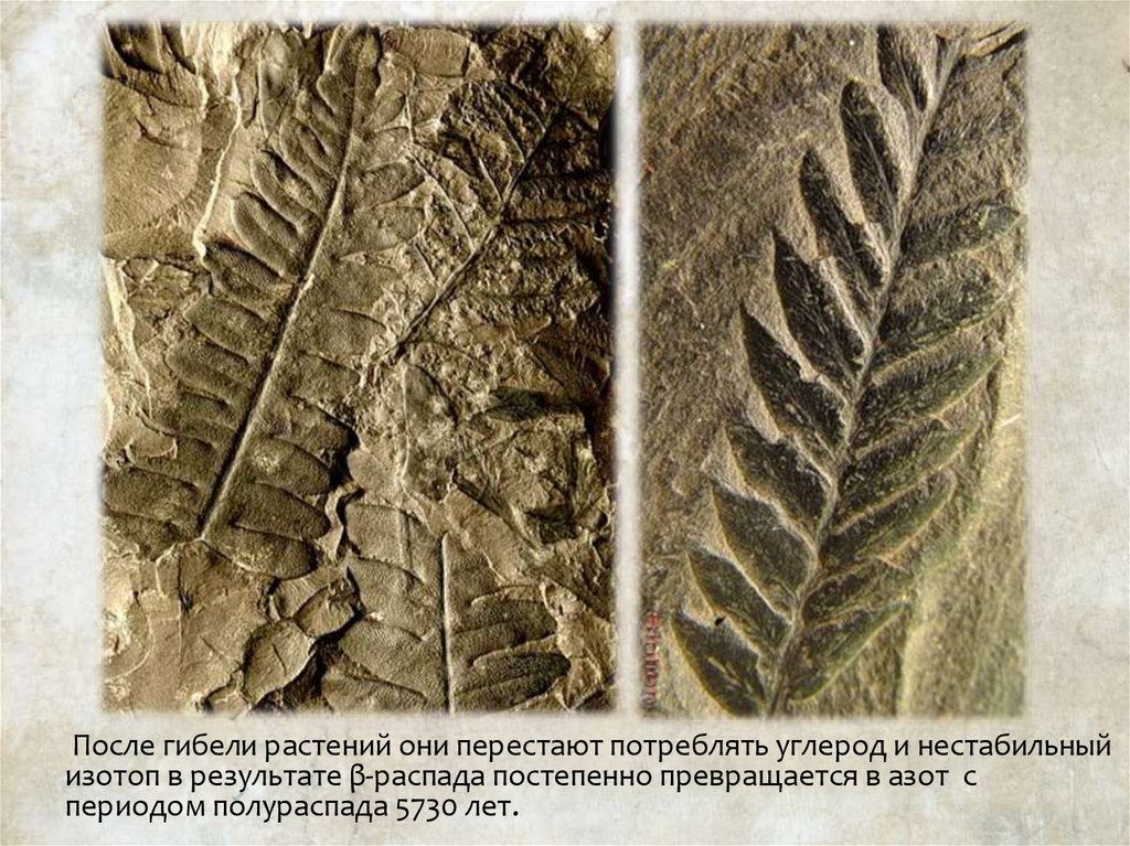 После гибели растений они перестают потреблять углерод и нестабильныйизотоп в результате β-распада постепенно превращается в азот с