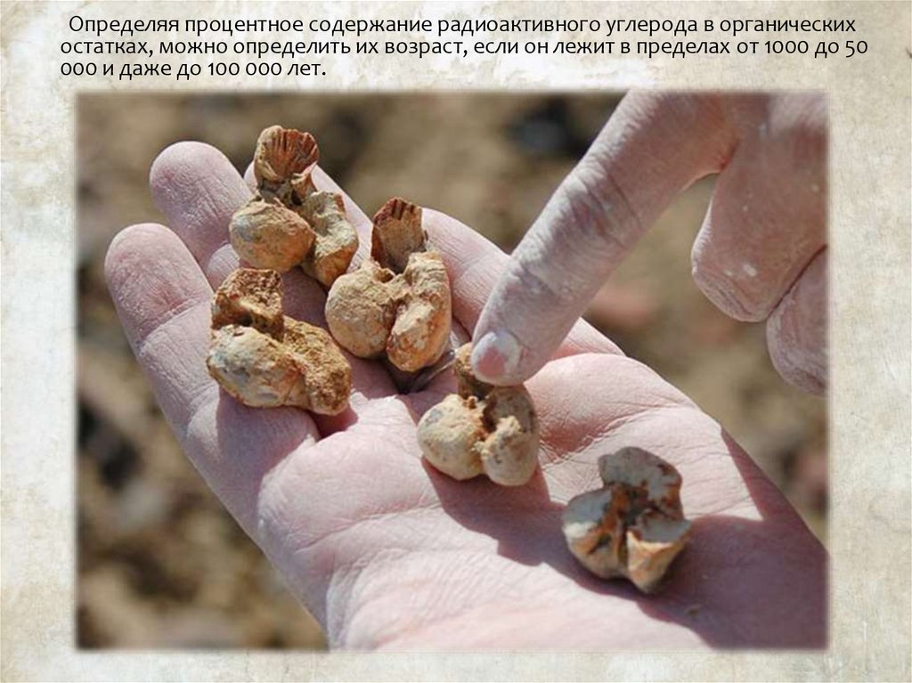 Определяя процентное содержание радиоактивного углерода в органическихостатках, можно определить их возраст, если он лежит в пределах от 1000 до 50