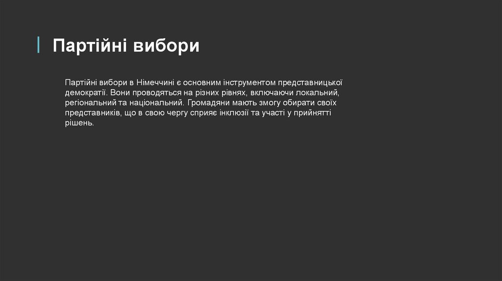 Партійні вибориПартійні вибори в Німеччині є основним інструментом представницької