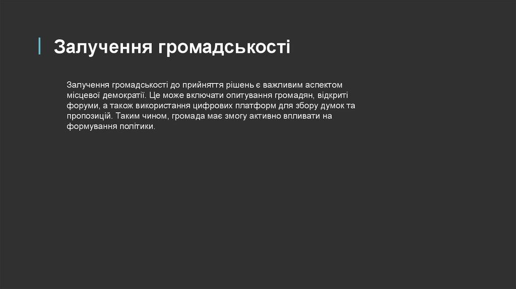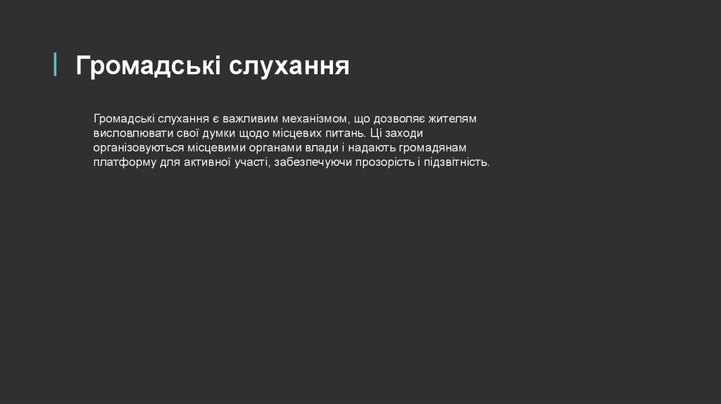 Громадські слуханняГромадські слухання є важливим механізмом, що дозволяє жителям