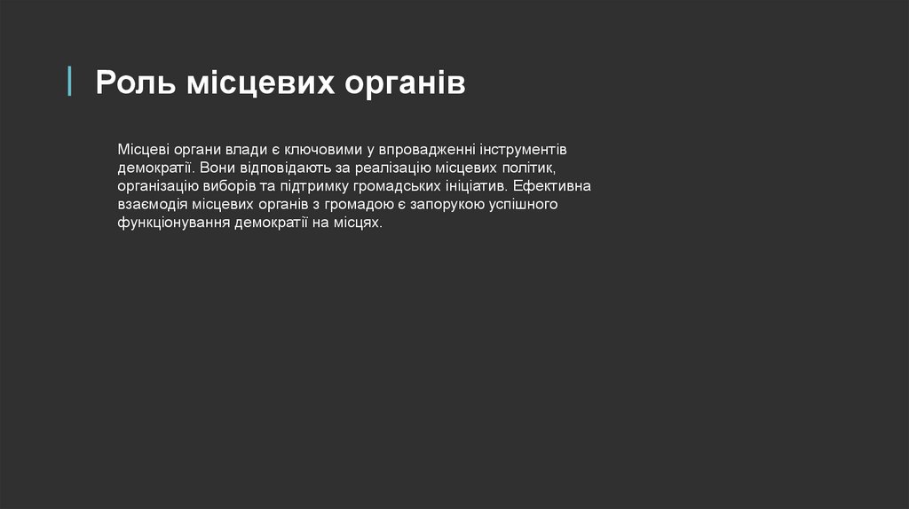 демократії. Вони відповідають за реалізацію місцевих політик,