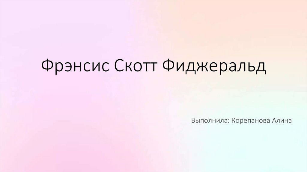 Фрэнсис Скотт ФиджеральдВыполнила: Корепанова Алина