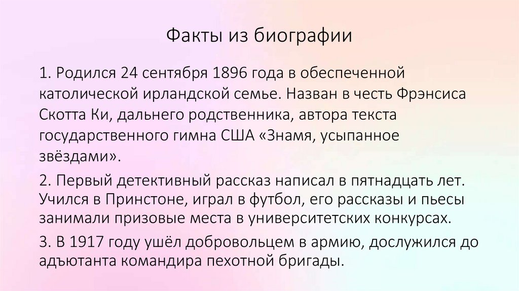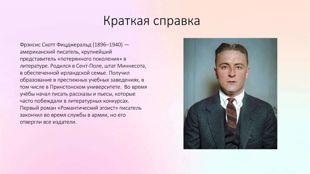 Краткая справкаФрэнсис Скотт Фицджеральд (1896–1940) —
