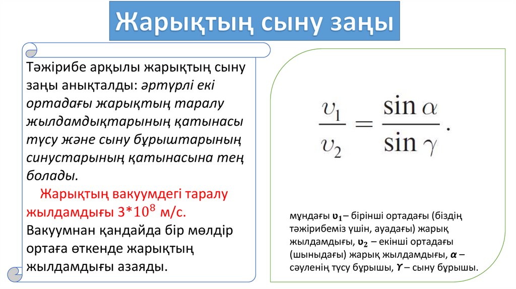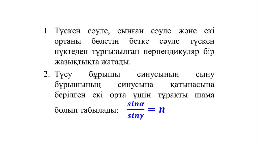 1. Жарықтың сыну заңы