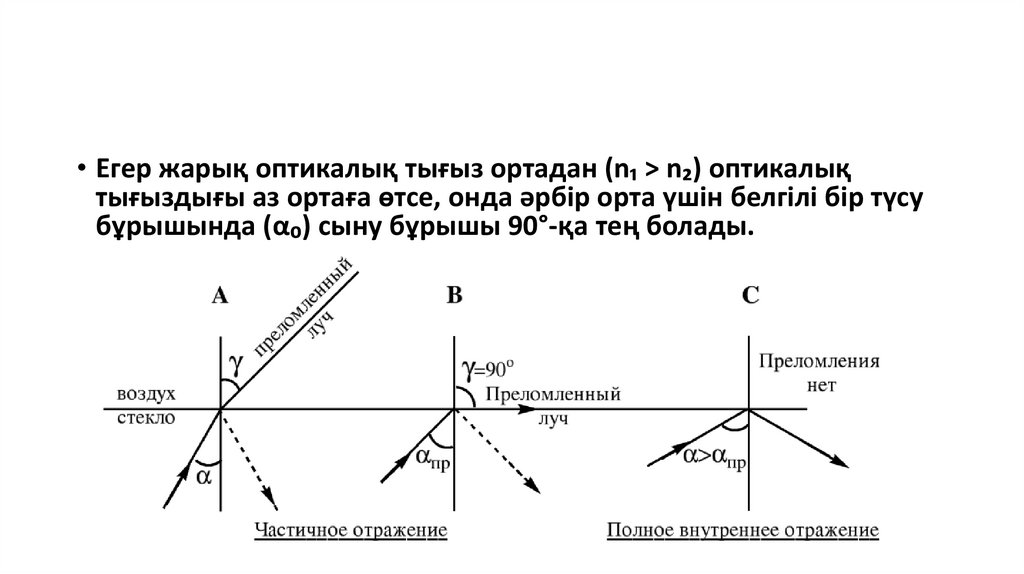 ортаға өткенде жарықтың