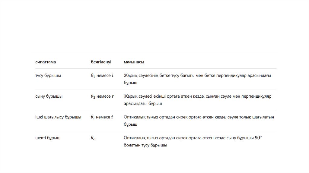 түсу және сыну бұрыштарының